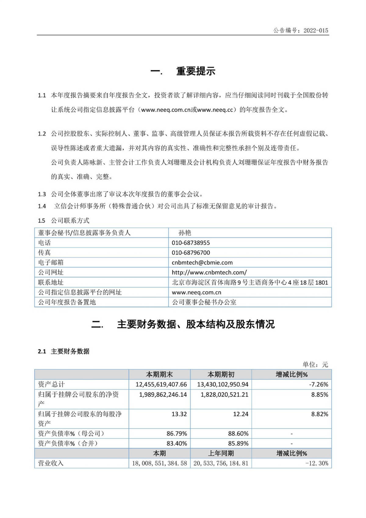 中建信息2021年年度報告摘要