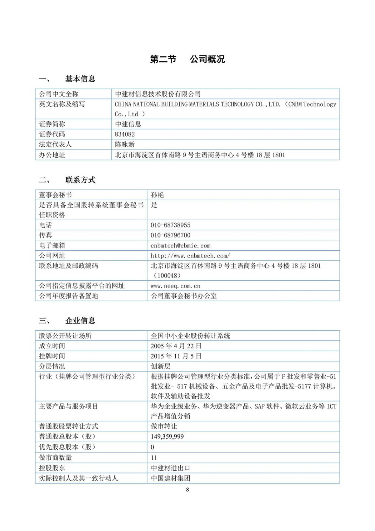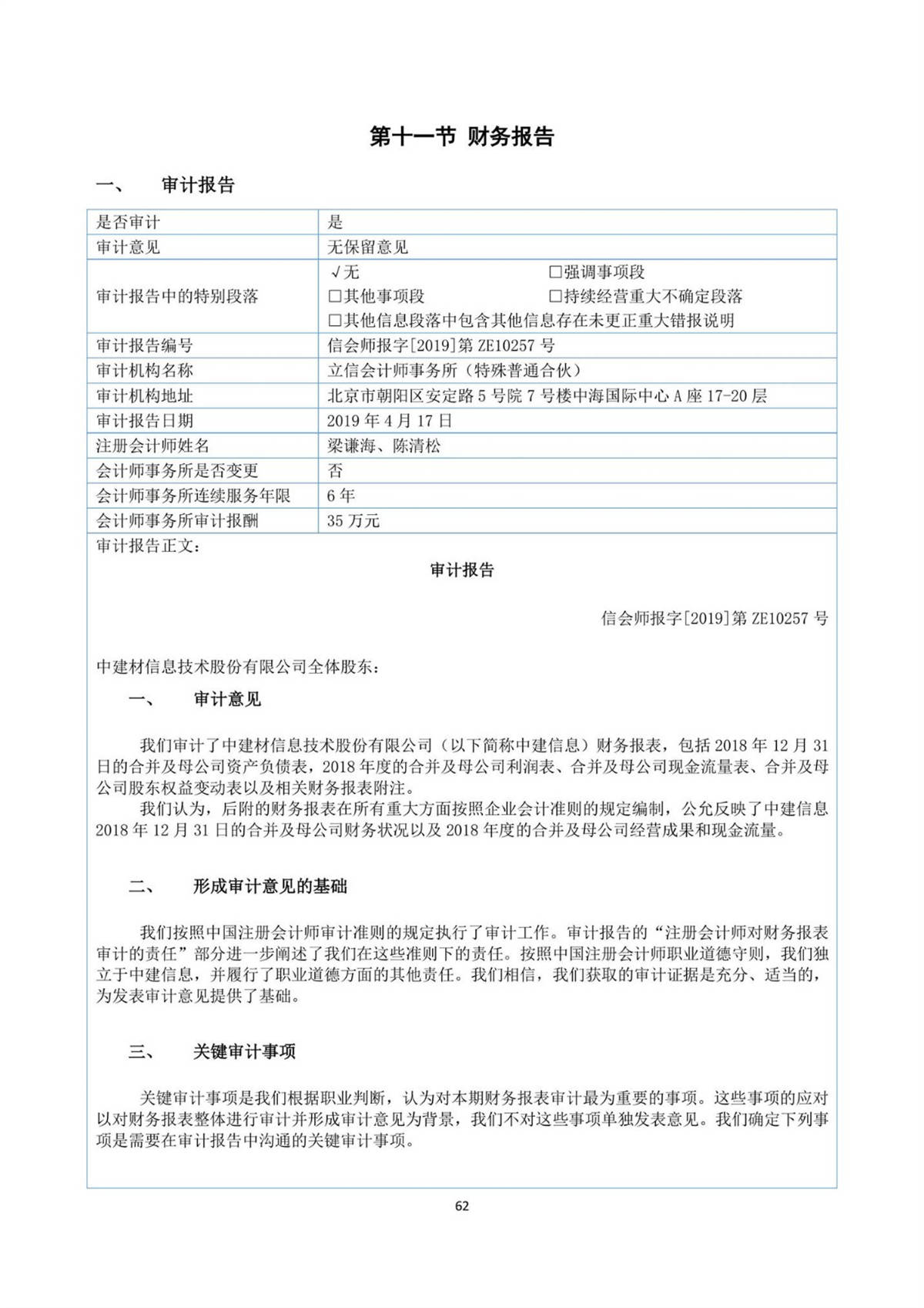 中建信息2018年年度報告
