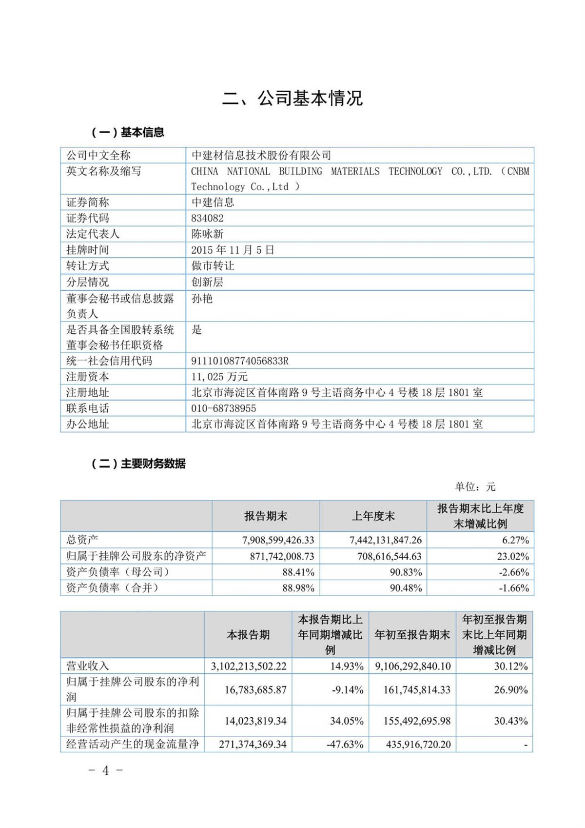 中建信息2018年第三季度報告